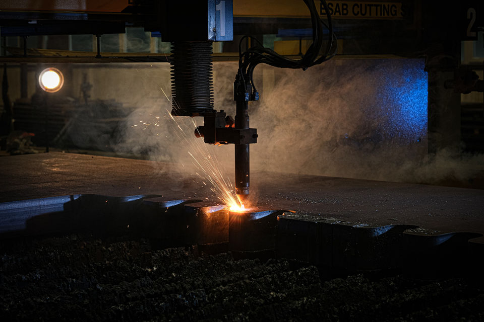 K výrobě výpalků používáme pálící stroje ESAB, které zaručují vysokou kvalitu řezu. Umožňují nám pálit plechy až do tloušťky 300 mm.